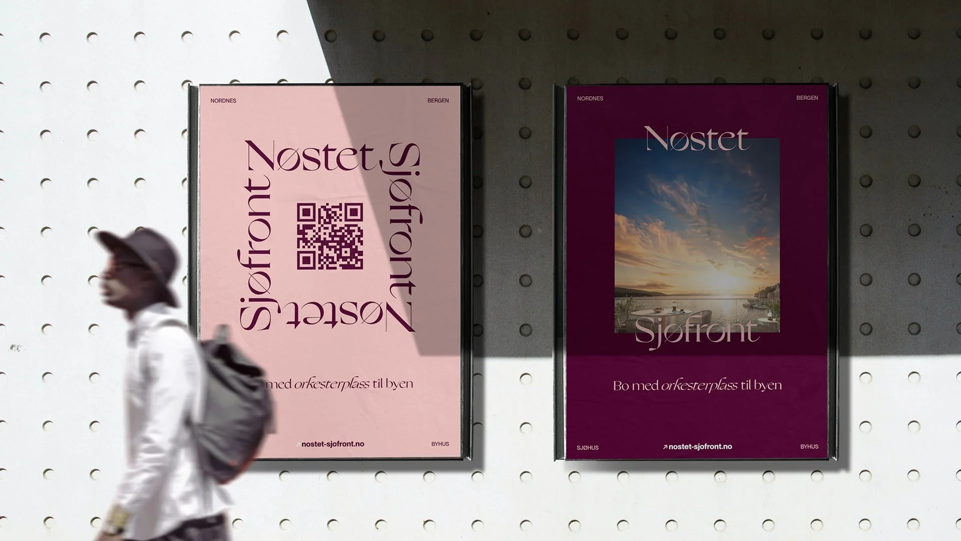 Vi utviklet navn, strategi og en helhetlig merkevareplattform for prosjektet – med tydelig kommunikasjon, fremtidsrettet design og en identitet som speiler både arkitekturen og beliggenheten. Visuelt har vi hentet inspirasjon fra kontrasten mellom det urbane og det luftige: materialitet og byliv møter sjø, sol og utsikt.